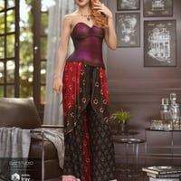 Four extremely detailed textures for the dForce Raeni Outfit, using two-tone dupioni silks, Indian brocades, traditional block print textiles and original trims. Create two different outfits with each texture option.