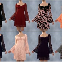 Featuring flared sleeves, fitted bodice, and multiple opacity and style presets.
