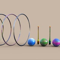 This package contains two types of leotards with three texture sets each. And the official apparatus (hoop, ball, clubs, ribbon and rope), following all the dimensions and norms from FIG (Fédération Internationale de Gymnastique).