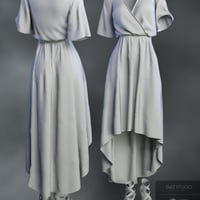 Roxanne is a loose-fitting, flowy dress with a high-low skirt, elbow-length sleeves, and a cross-over top with flirty neckline. To complement the dress, high-heeled, strappy sandals are included. Six beautiful textures are included for both the dress and sandals, making it the perfect dress for summer.