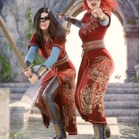 This Outfit, comprised of Shirt, Pants, Tunic, Boots, and Sword. Ruby Siege comes with tons of supported shapes and Widen morphs to fit Genesis8 Female in most all poses just right. Get Ruby Siege for your next Sci-fi, Fantasy, Anime render!