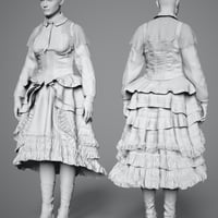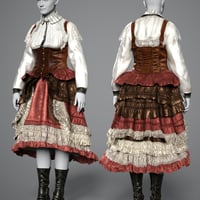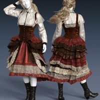 dForce Saloon Dress Outfit for Genesis 9 comes complete with a dress with a layered ruffled look and sleek low heeled boots. There are a multitude of shapes and adjustments to make this work well with most of your Genesis 9 characters.