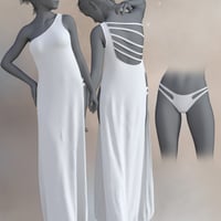 dForce Scarlett is a slinky beautiful long dress with one shoulder and a strappy back. The dress has been optimized for dForce but with the 8 skirt bones it can be used as conforming in a variety of poses.