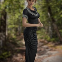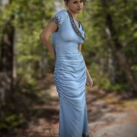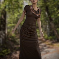 It includes a long cinched side druidic cowl neck dress, and 8 styles in Iray.