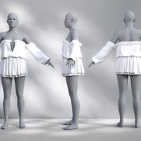 The Seraphina Dress is a short, off-the-shoulder garment designed for Genesis 9, featuring lace detailing, a flared skirt, and simulation-ready construction.