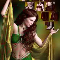 Top, sash, skirt, and veil are separate items and can be modified, mixed and matched in various ways. To make the most of this versatility, several wearables presets for different styles are included in this set. They give you an easy start in producing your own scenes.