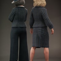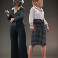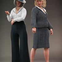 The dForce Shoofly Sleuth for Genesis 8.1 Females includes a jacket, top, skirt, pants, belt, hat, and heels and is ready for your next scene!