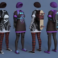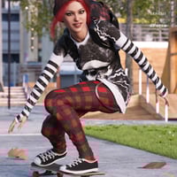 Whether slapping down a hard curb grind, launching ollies off barriers or just hanging with friends at the nearest skate park, “Emo Skate Punk with Skateboard” for Genesis 8 Female and Teen Raven 8 is brings counter-culture edginess to your library with it's highly detailed pants, shirt, gloves, knit hat and battery of facial piercings, as well as it's exactingly accurate, modern “skater style” backpack with skateboard attachment strap, and of course, a fully rigged, intensely detailed skateboard original figure.