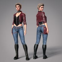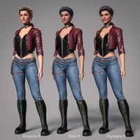 Souls Keep Outfit for Genesis 9 has many supported shapes and loosen morphs to fit Genesis 9 in almost all poses. It comes with a corset, jeans, boots, and jacket, as well as a collar and bag.