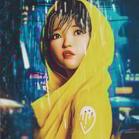 As she walked, her black hair seemed to light up, as if the rain echoed its natural glow.