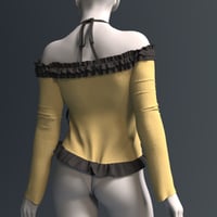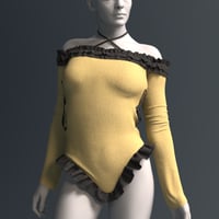 Featuring an elegant off-the-shoulder long-sleeve cut paired with delicate layered ruffles along the neckline and edges, this piece stands out with its unique cross-neck drawstring and side-tie details, expertly accentuating the character's captivating curves.