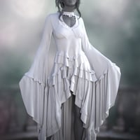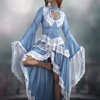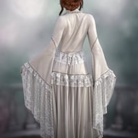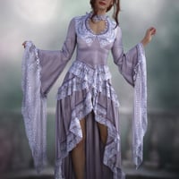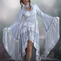It includes a long, flowing, sleeved, lacy bodice, a long, flowing, asymmetric, lacy skirt, and 6 styles in Iray.