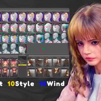 It includes 60 hair colors, 10 styles,10 winds and 39 adjustment morphs.
