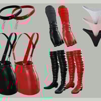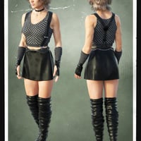 This is Leather Suspender Skirt Outfit Set for Genesis8 Females. Choker, Gloves, Tanktop, Skirt, Panty and Boots set. 8 color options for Tanktop, 3 color options for panty, 2 color options for other parts.