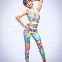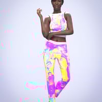 This wearable set comes in 10 different and vibrantly colorful material presets for both the Crop Top And Leggings. Just select each clothing item and apply the preset you like, mix and match the tops and bottoms to create your own styles.