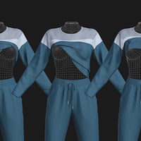 This is a very textured set of home clothes, containing 10 Clothes materials, 10 Trousers materials, and 39 morphs.
