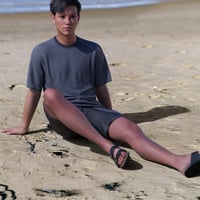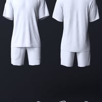 The dForce Summer Vibe Outfit for Genesis 9 consists of a raglan-sleeve, round neck t-shirt in a light cotton knit, a pair of shorts with outside pockets, and an elasticated waistband in a light cotton blend, making the shorts perfect for swimwear too, and a pair of leather buckle slider sandals.