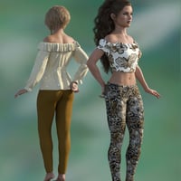 Garments conform via auto follow to the majority of poses with morphs included to aid in adjusting the skirt areas although using the power of dForce is highly recommended. Pants are conforming only yet you can add a dForce modifier if desired.