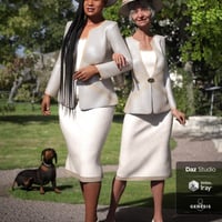 This dForce outfit comes with dress, blazer, modest heels, and hat with bow so your Genesis 8 Female can look her best when meeting with friends for lunch or going out on the town.