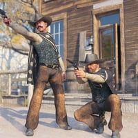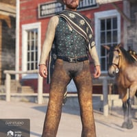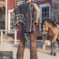 He'd look every part a Western man in the dForce Sunset Rider Outfit for Genesis 8 Male(s), especially in his Poncho and Chaps. And after a long draught at the Saloon, he'd rustle up his horse and take off into the sunset.