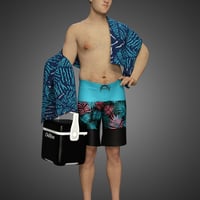 dForce Swim Gear for Genesis 8.1 Males includes a pair of swim trunks, a towel, and a cooler for all your swimming adventure scenes!