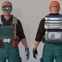 The Tech Engineer Outfit is a complete set consisting of a shirt, mechanic's overalls with pockets, knee pads, protective gloves, work goggles, a chest strap with a tool pack, a cap, and safety boots; perfect for dressing your character as a futuristic mechanic.