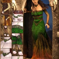 The Dress, trailing Over-Sleeves and Ornament pieces can all be loaded as separate pieces or together with the bra and panties. You can mix and match them to achieve your very own customized look.