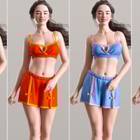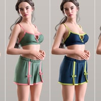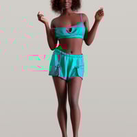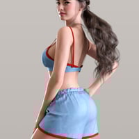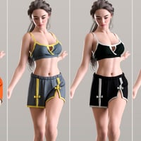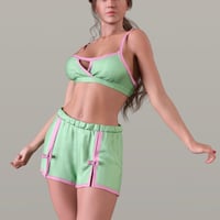 This set includes a cropped top with decorative front detail and comfortable shorts with playful ribbon accents. The design blends a sporty feel with a soft, feminine touch, making it perfect for casual scenes, loungewear, summer looks, and everyday renders.