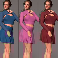 Sporty Outfit for Genesis 9 is a sports outfit consisting of a top, short long sleeve, and skort. It includes 56 morphs, 10 color options for each item, as well as the option to hide the skirt if you only want shorts and vice versa. You can also make the skirt and long sleeve as a net material, and remove wrinkles on the top and skirt if you don't want them.