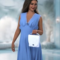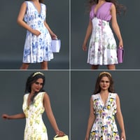 Introducing the perfect outfit for the summer season - the dForce Twilight Outfit for Genesis 9. It is a delightful dress with a floral decoration, a stylish handbag, and a charming hairband!