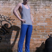 Urban style outfit consisting of sweat pants, a tank top and casual loafers. An outfit for the urban metro male. In three modern colour styles.