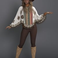 Urban Fall Style consists of two different types of ponchos, a sweater, leggings, knee-high boots, and a jaunty hat.