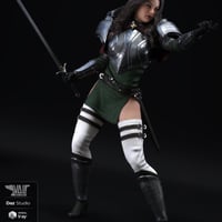 This full body armor comes with Belts, Boots, Bracers, Breast Plate, Dress, Gloves, Panties, Sword and Scabbard, plus tons of supported shapes so your favorite warrior can go to battle fully prepared.
