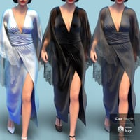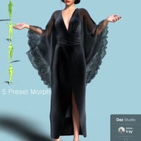 The dress is a simulation costume and includes five prepose morphs, and contains 4 different materials, while the shoe contains 7 different materials.