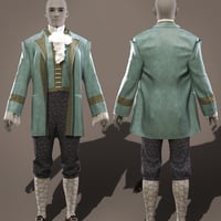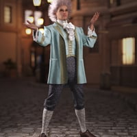 This dForce Veneziano outfit for Genesis 9 captures the grandeur of 18th‑century Venetian aristocracy with exquisite detail. The ensemble features a powder‑blue brocade coat trimmed in gold, a ruffled white shirt, patterned breeches, and classic buckle shoes, perfect for masquerade scenes or historical renders.