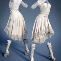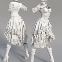 After running the dForce cloth simulation, use the included "Poofy" morphs on the skirts to dial in a bit more ruffle to the skirts.