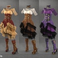 Vernea Fae Outfit for Genesis 8 Female(s) is a 9 piece outfit inspired by the fashion of steampunk with a style that crosses into many genres. Whether you have a scene onboard a pirate ship, in a foggy London street, or in the Old West, Vernea Fae will bring a touch of class and elegance to your characters.