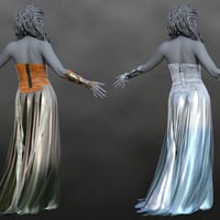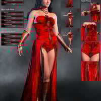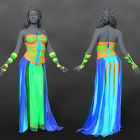 Introducing the captivating dForce Vuriel Wardrobe Base for Genesis 9. This essential collection combines an alluring corset, a flowing skirt, intricate arm wraps, and snug panties.