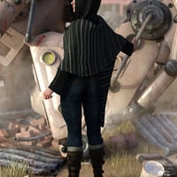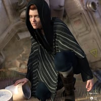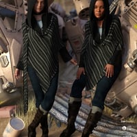 The Wander Outfit is a boho-style outfit for Genesis 8 Female that contains a shawl, hoodie, t-shirt, pants, boots, a choker and faux knee heights.