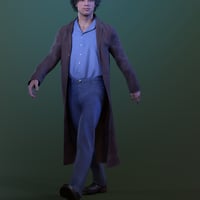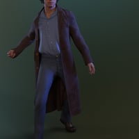 The long coat is fully conforming but for best results simulate with dforce. Includes rigid follow nodes for distortion-free morphs and sims.