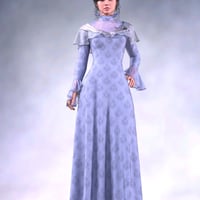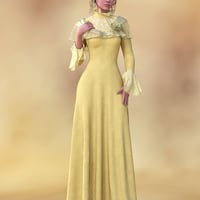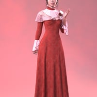 Featuring a floor-length dress adorned with an elegant boa, floral decoration, and matching shoes, this outfit is perfect for historical renders, romantic scenes, vintage portraits, and steampunk adventures