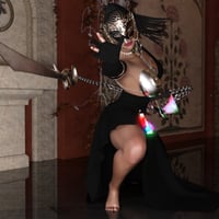 Now your Genesis 8 Female can embrace her power with the Xanadu Outfit. This fantasy warrior's outfit includes mask, earrings, choker, chest, belt with potions, dforce only skirt, glove, brace, and dual chain blades, plus poses for the weapon, render options and the HDRI map and settings shown in the promos!