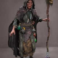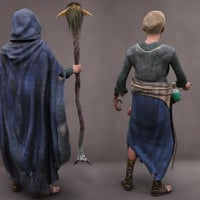 Wielding an evil staff and carrying portions and spells, this set is perfect for any fantasy scenes. The set comes with four different material options, a complete wearable preset, and wearable presets for the staff.