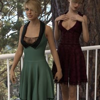 Sweetly feminine dress with a knee length flared skirt, stylish collar and lots of lacy material presets to make your fashion statement. Materials are set up for easy mixing-matching and customization with lots of selectable surfaces for maximum versatility.