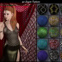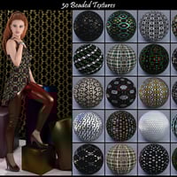 Step out in style with DG Iray Bling It! shader presets for Daz Studio Iray. There are 30 handcrafted beaded fabrics, 40 detailed sequins, and 60 metallic lamé and silky solids. Jazz up the solids with 27 patterned partial surface presets to give the solids a two toned look.