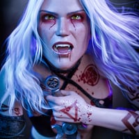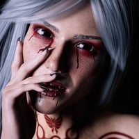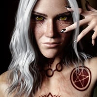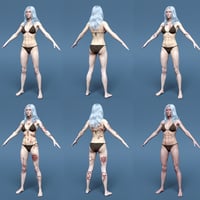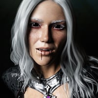 Sculpted in Zbrush, "Dhampir the Dark Angel" comes with an ultimate quality set of PBR shaders and textures. Every pore, blemish, and vein renders with exceptional realism. Separate blood LIEs for her face, eyes, lips, body, and arms. Includes fangs with a bloody mouth and teeth option and separate arms and nails, body, leg tattoos, and more.
