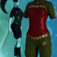 This set contains a Bodysuit, LegStuff and a Hair Prop with a Conforming Veil. It also has some Special Coins that conform to the Arms for that just tossed effect!