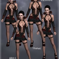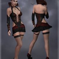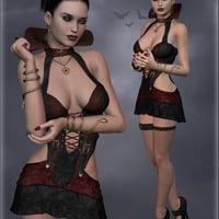 Lynette's Dark Nights is a fabulous goth/vamp outfit for those nights when only old velvet, leather, and lace are perfect for your femme fatale. Included is a dress, gloves, glove wraps, stockings, shoes, necklace, and matching earrings. The dress skirt has body handles and there are extra movement morphs for it, as well as the collar and the glove wraps so they may be used alone.