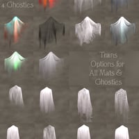 This package contains 4 Ghosts, 9 different Spooky textures and 8 transparency options. The Ghosts load slightly sheer with a bump for realism. The texture and transparencies naturally work with every ghostly prop. While they are roughly Genesis sized, they can easily be scaled up or down to suit your vision. They’ll be thrilled to slide thru walls, floors, ceiling, chairs, beds and genesis figures.