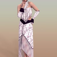 Donnena presents Margot! Margot is a five-piece set: a skirt, right and left cuffs, a scarf and a bodice.